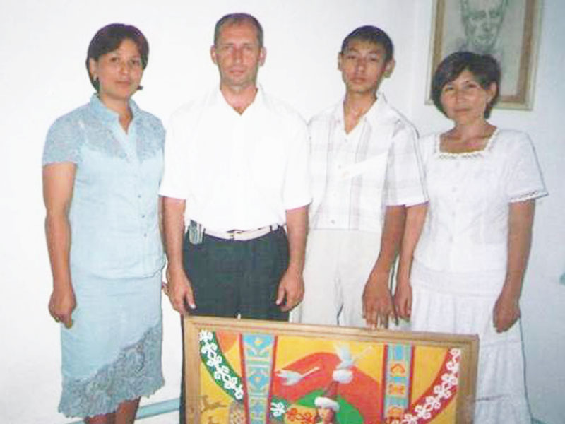 Мектеп ұстаздары: Ерханова Айна, Тұрапбаева Әйгерім, мектеп директоры Абдюков Марат, және мектеп бітіруші түлек